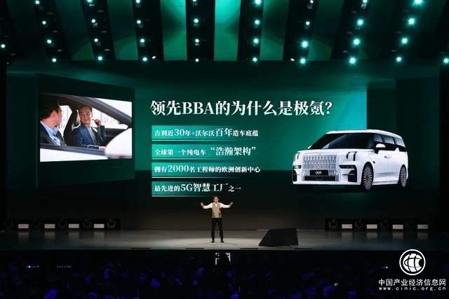 一个公司怎么能够源源不断地做汽车?它需要有一个造车的架构。全世界一些非常先进的汽车公司,丰田、大众、通用在过去的几十年里都形成了源源不断地能够生产车型的架构能力。全世界第一个纯电车的架构是2020年由吉利发布的,叫作浩瀚。你今天看到的极氪有两款车型,001和009,极氪今年推出的是009MPV,是全世界第一款原生纯电豪华MPV,但是在这个架构上,已经生产出多款新能源汽车了。