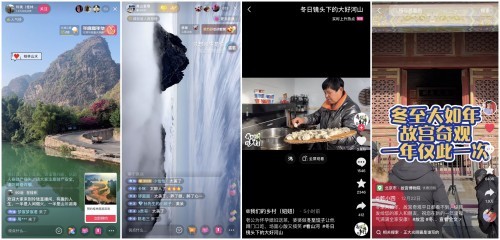 沐浴着桂林的冬日暖阳,抖音主播@玲珑 为大家讲解了遇龙河的冬日美景。这场6个多小时的直播吸引了超1.2万人次观看。玲珑在直播间展示的桂林美景也为网友提供了冬季度假的另一种选择。11月30日,主播@黄山查理 在直播间展示黄山初雪美景,12万人次网友与他在云端共同赏雪。在冬至时节,@我们的乡村(妞妞) @故里圆姐 等创作者用短视频记录下当地包饺子的习俗,@乾小四 则拍摄了故宫正大光明匾在一年一次的冬至这天被阳光照亮的美好画面。