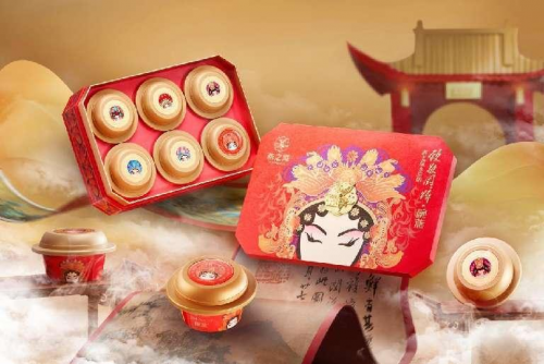 燕之屋·致敬国粹·碗燕礼盒外观以京剧经典曲目《贵妃醉酒》中的主角杨贵妃为设计灵感,正面呈现一顶象征着吉祥如意的凤冠,并镶嵌燕之屋LOGO金属女神铭牌于其中,尽显优雅尊贵气质,充分融合中国国粹京韵与中式燕窝文化。同时,礼盒内六碗珍馐碗燕的碗盖上分别印有《锁麟囊》薛湘灵、《穆桂英挂帅》穆桂英、《霸王别姬》虞姬、《长坂坡》赵云、《龙凤呈祥》周瑜和凤燕于飞《贵妃醉酒》杨贵妃六位经典京剧人物形象,醒目抢眼,韵味十足。