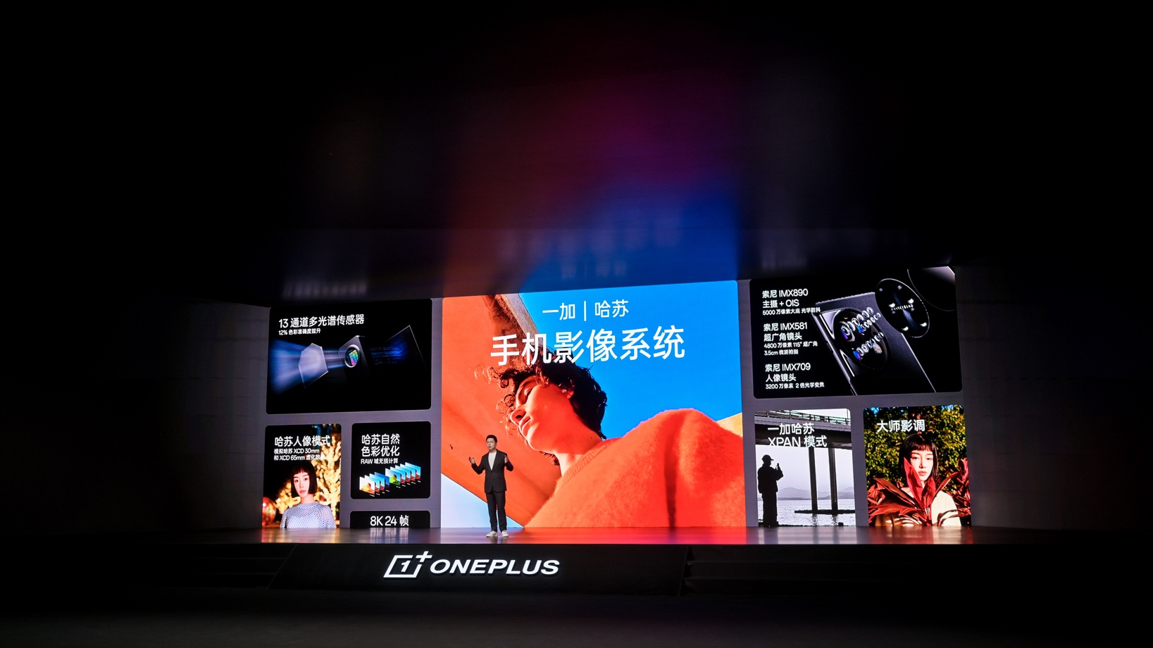 在一加 11 上,一加延续与哈苏的合作,还原哈苏影像的故事质感。一加 11 三颗镜头均为索尼旗舰镜头。分别为 5000 万像素 IMX890 主摄,3200 万像素的两倍超光感人像镜头 IMX709 和4800 万像素的超广角/微距镜头 IMX581,全面顶级的旗舰影像配置覆盖各类影像场景。