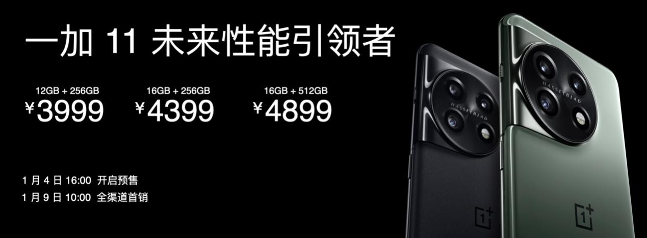 一加 11 将于1月9日10点全渠道开售,现已开启预售。 12GB+256GB版本,售价3999元; 16GB +256GB版本,售价4399元;16GB+512GB版本,售价4899元。同时购买一加 11 与一加 Buds Pro 2套餐立减100元。伴随新机发布,一加将于1月7日在上海、深圳双城门店举办「一加 11 Pop-up 快闪活动」,现已开启报名,登录一加官网即可报名。