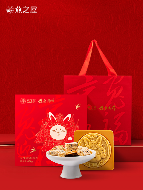 燕之屋25年专注高品质燕窝,时刻夯实品质底线。值此新春,燕之屋匠心呈现的致敬国粹·京兔迎福燕点延续以往的高品质水准,在原料上精挑细选、造型上悉心考究,力求打造既新颖又讨喜的品质点心,让消费者尽享新春“年味”。