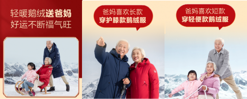足力健护膝款鹅绒服,自产品售卖后持续得到用户的好评,但是也有老人反馈希望能够有轻便短款。今年,足力健推出了轻便款鹅绒服,采用户外级面料,挡风挡雨雪,更能透湿排闷。针对冬季皮肤干燥,易产生静电的问题,轻便款鹅绒服还添加了黑金石墨烯,减少老人静电烦恼。短款鹅绒服又轻又保暖,老人穿衣不再臃肿,简约短款设计,利落显年轻,让外出游玩更轻松。