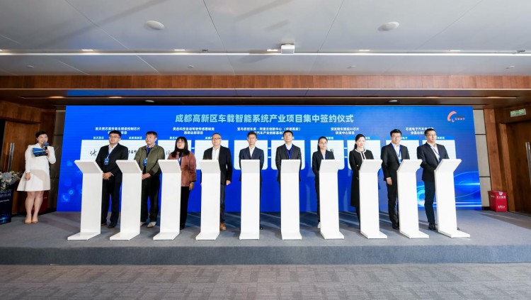 大会现场,成都高新区与吉利汽车成都研发中心项目、智能网联汽车车载智能终端基础平台项目、成都岷山智能传感技术研究院项目、长沙智能驾驶研究院有限公司全国第二总部项目、超级骆驼低速无人车研发及应用总部项目、昊岳科技西部总部项目、宝马初创车库-阿里云创新中心(成都高新)智能汽车产业创新基地项目、深流微车规级AI芯片研发中心项目、芯进电子汽车传感器全国总部项目等10家合作方集中签约,投资总规模超90亿元。