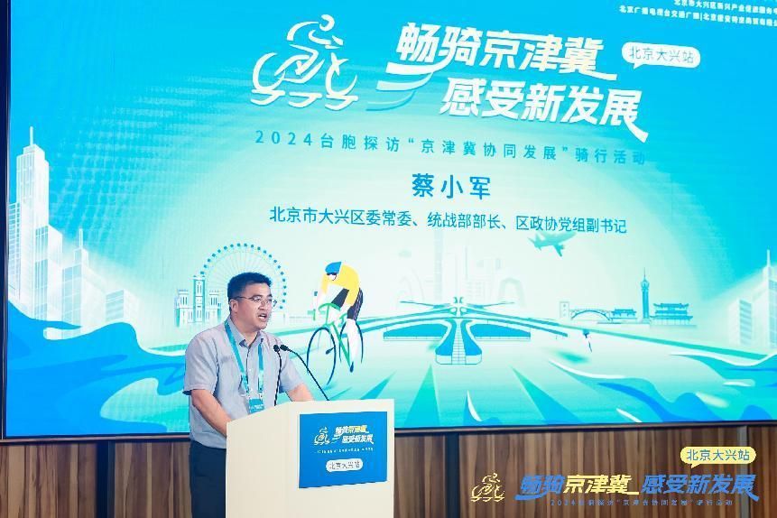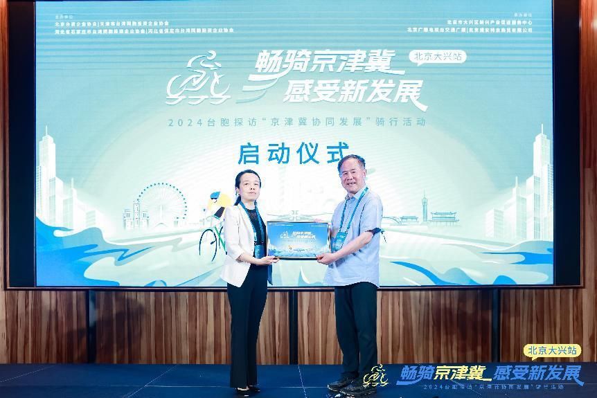 6月21日,2024台胞(台青)探访“京津冀协同发展”骑行活动在大兴区正式启动。本次活动由北京台资企业协会、天津市台湾同胞投资企业协会、河北省石家庄市台湾同胞投资企业协会和保定市台湾同胞投资企业协会共同主办,大兴区新兴产业促进服务中心、北京台协自行车俱乐部、北京广播电视台交通广播、捷安特京商贸有限公司承办。北京市台办主任霍光峰、大兴区委常委蔡小军、市台办副主任刘先传、大兴区副区长周新蓉等出席启动仪式,来自京台两地80余名企业家和嘉宾参加活动。
