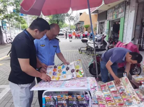 此次行动,执法人员共检查校园周边经营卷烟门店105家,玩具、文具店40余家,责令下架无厂名厂址、无中文标识、未加贴3C强制性产品标识等“三无”问题玩具5种,发现无证经营烟草制品门店4家,2户门店售卖“烟卡”,为未成年人健康成长撑起了强有力的“保护伞”。