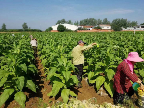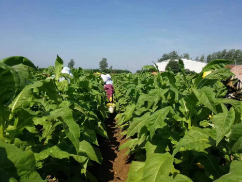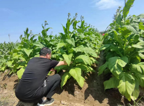 在河南省罗山县楠杆镇成片的烟田里,一株株烟株挺拔向上,一片片烟叶碧绿摇曳,黄土地披上了绿色的“夏装”。烟叶技术员忙着查看烟叶生长情况,手把手指导烟农进行合理打顶、抑芽等,烟农们穿梭在田间忙着对烟株进行打顶抹杈,夏日的烟田一派繁忙的景象。
