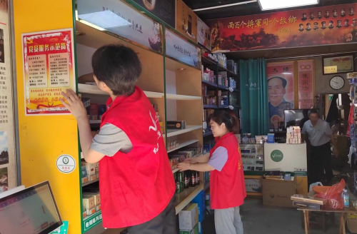 在日常的走访中,客户经理李振霞了解到阮永琴夫妇有改造店铺的想法,为传承家族红色基因,李振霞与阮永琴夫妻俩一拍即合,打造红色加盟终端,红安县局积极组织人员上门指导卷烟陈列、规划店面整体布局,历时一个月,小店顺利改造完成。