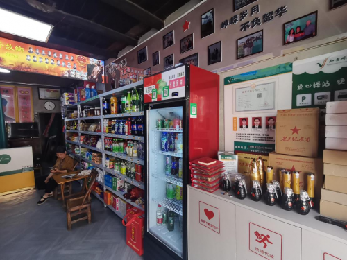 同时,在店内设有生活用品区、卷烟销售区、便民服务区、乡村振兴区等多个功能模块,为帮助农户拓宽销售渠道,助力乡村振兴,阮老板免费帮助农户寄存农产品在功能区售卖,同时店内还存放有雨伞、急救箱和充电宝等日常便民工具,给过路的游客提供方便。