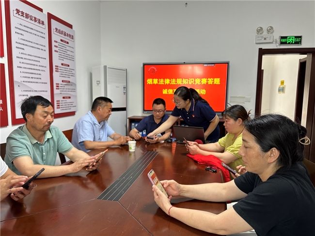 (图为烟草工作人员与零售户共同进行法律知识竞赛答题)