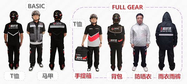 此外,顺丰同城为香港地区骑士推出了带有“SoFast”标志的系列装备,包括T恤、马甲、手提箱、背包、防晒衣、雨衣雨裤等。目前,首批注册骑士可免费获得基本装备(T恤或马甲),成为先锋骑士还有机会免费获得“SoFast”全套装备。