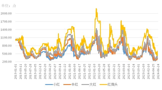 不同规格红虾价格走势(单位:点)