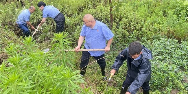 (图为县局主要负责人带队到防汛责任段巡堤除草查险)