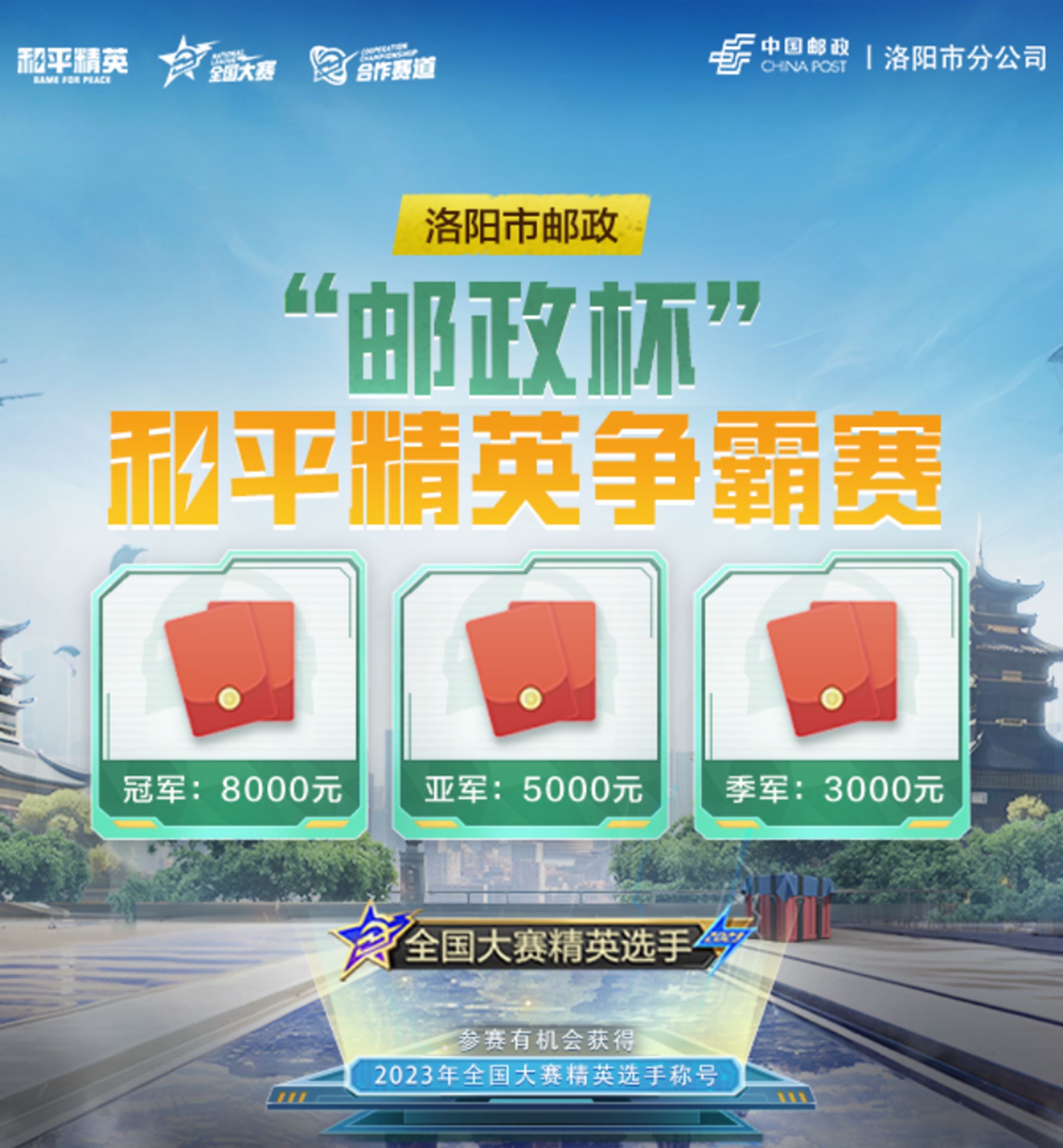 在腾讯游戏人生官方赛事服务平台的帮助下,2023年8月25日,由洛阳市邮政分公司、洛阳广播电视台、洛阳广电传媒集团有限公司联合主办的“邮政杯和平精英争霸赛”正式启动。