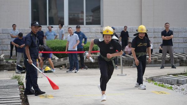 下午三点半,来到了技能竞赛的压轴环节——携消防水枪50米往返接力。在烈日炎炎的赛场上,虽然高温炙烤着每一个人,但大家的竞技斗志却丝毫未减。尽管已经被汗水湿透了衣服,但是没有人选择放慢脚步,因为他们知道这不仅是一场技能竞赛,更是一场对安全意识的考验。