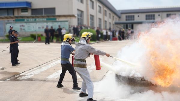 “我宣布,比赛正式开始,各参赛员请听发令信号。”裁判员吹响了第一个项目——灭油盆火比赛的哨声。随后,两名手提灭火器、防护齐全的参赛员很快冲到了点燃汽油的火盆前,按照先前的示范要求对着火焰喷射灭火干粉,瞬间就将随风摇曳的火苗熄灭,引来了旁边围观人群的一阵掌声。