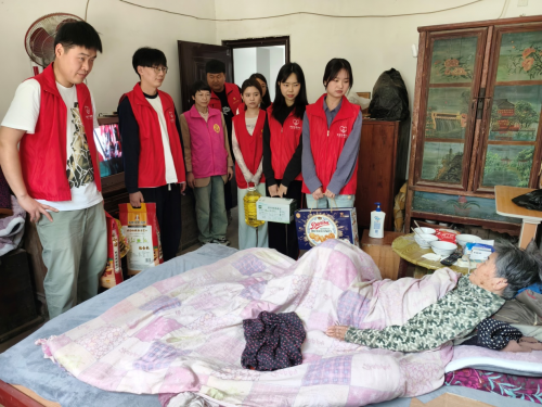 “你们一次又一次地来看望我,我真的既感到很亲切很温暖,快到这边坐一会儿吧……”看到身着红马甲志愿者们的到来,躺在床上的老人略带激动地说道。
