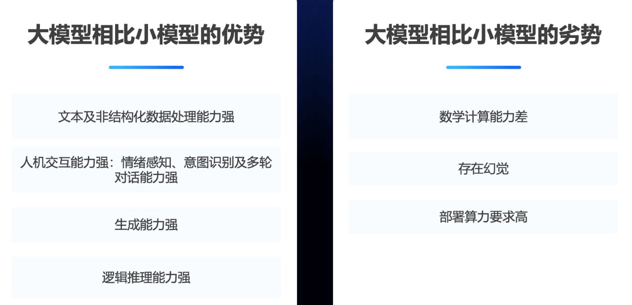 而相比小模型而言,大模型也存在明显的劣势,例如大模型“幻觉”问题(即大模型答非所问),大模型的部署算力要求高造成算力资源浪费,部署成本高等问题。