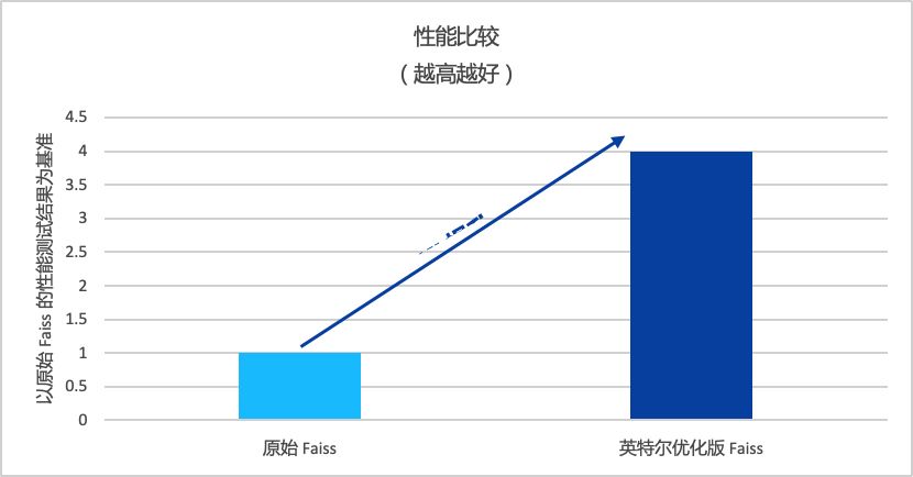 在大规模向量相似性检索任务中,经英特尔优化过的版本性能可提升至4倍左右。
