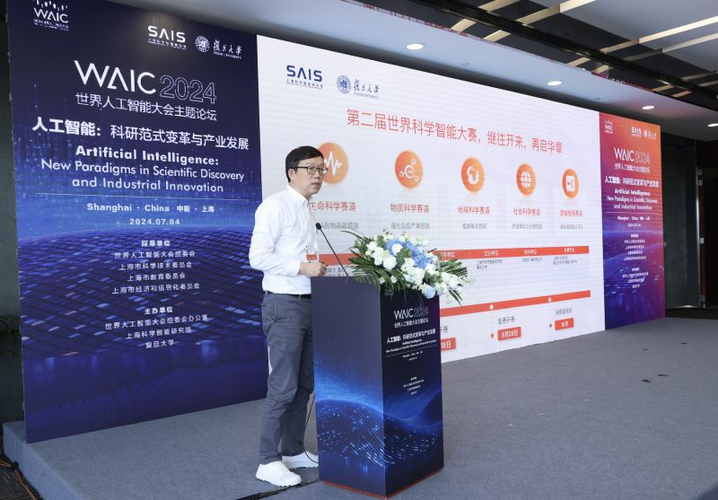 图说:上海科学智能研究院院长漆远介绍第二届大赛情况