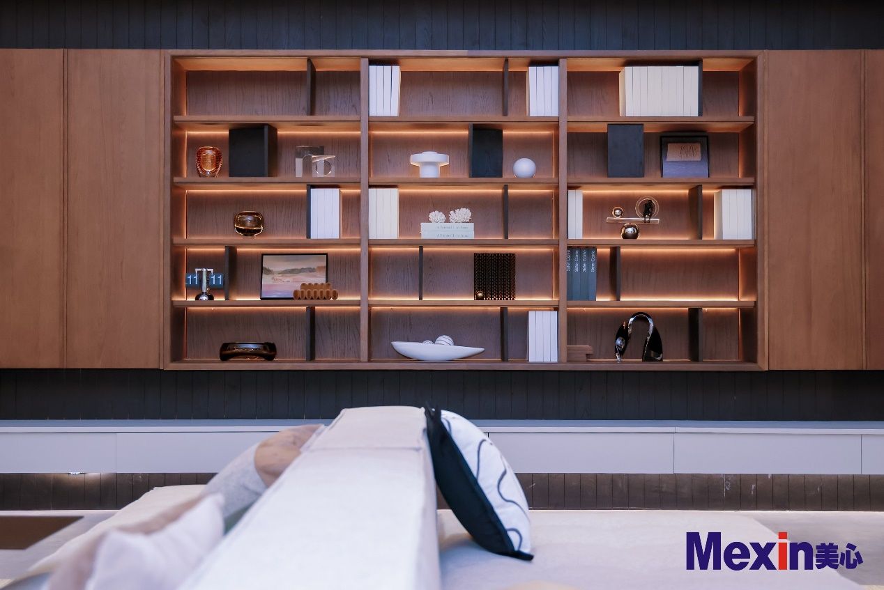 而最近几年随着美心大举切入整装大家居的赛道,在真正看到整装大家居家居运行逻辑后,我们的工程师们提出第二个理念,与有机空间的理念融合互补。这个理念叫做后退美学,即将空间的主体留给活动在里面的人。它不止于思考产品的堆砌摆放或者实体的体验本身。更多是在整体空间对空间尺寸的柔性考虑,空间感随着人的进出而自行缩放,让人的内心不受环境左右,始终保持宁静。