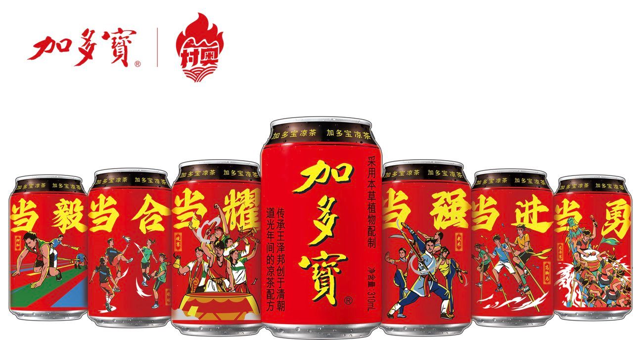 随着五十六个民族共同点燃村奥火炬,熊熊火焰映照之下,盛大的音乐奏响,场内外运动员与观众围绕共同热情蹦侗迪,开幕式的氛围被推向高潮。随着村奥会火热启幕,加多宝村奥系列主题罐也惊艳上市,加多宝村奥罐所刻画的“当耀、当强、当进、当勇、当毅、当合”精神,凝聚成一股“正当燃”的民族精神,在村奥现场高光呈现。