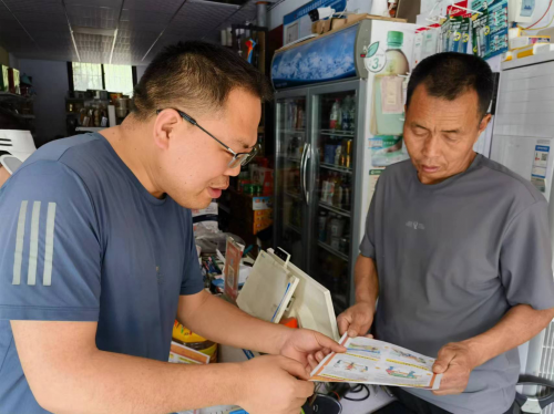“您好!我是烟草公司的客户经理。这些反诈案例您可一定要阅读了解。牢记咱们的‘四不’口诀,不轻信、不透露、不转账、不刷单,不让诈骗分子有机可乘。”上街区分公司韩文宝对着零售客户认真说道。