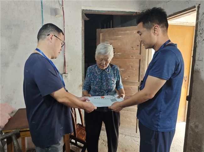 (图为为偏远山区困难零售户送证上门)