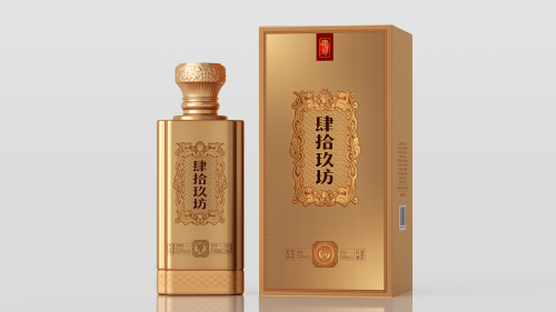 在外观设计上,乐敬四方酒瓶身以玛雅金为主,端庄大气,寓意着肆拾玖坊对四方宾朋的热烈欢迎和深深敬意。器型设计方圆相宜,刚柔兼具,底部装饰有锦鲤山水纹样,富有吉祥尊贵之寓意。瓶盖以精雕细琢的锤纹工艺为主,体现了匠人们千锤百炼的精湛技艺。图案设计则承袭肆拾玖坊文化图腾银票风格,双龙图案简约而精致,品牌特色鲜明。包装上融合了传统烟盒工艺与现代防伪光科技术,每一处细节均展现精致之美,整体设计美轮美奂,别具一格。