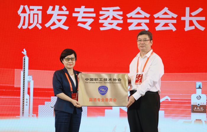 大会现场,中国职工技术协会理事长,全国总工会原副主席、书记处书记、党组成员李世明宣布露酒专业委员会正式成立。中国职工技术协会副理事长、组织部部长李伟言宣读中国职工技术协会《关于成立中国职工技术协会露酒专业委员会的批复》,宜宾五粮液股份有限公司担任会长单位,宜宾五粮液股份有限公司总工程师杨韵霞担任露酒专业委员会会长。五粮液集团(股份)公司党委书记、董事长曾从钦出席并致辞。股份公司党委副书记、副董事长、总经理蒋文格出席活动。