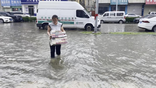 积水严重、道路淹没、车辆难行……有问题但总能解决,有困难但不曾被压倒。雨幕中,配送车辆冒着暴雨穿梭在乡村、街道。当雨水淹没了低洼的道路,车辆行进十分困难时,配送人员克服重重障碍,采用错时、绕路等方法,徒步涉水将一包包卷烟配送至零售客户手中,一鼓作气,顽强应对,千方百计完成送货任务。