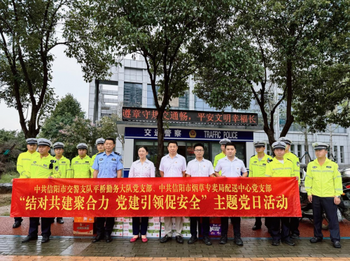 为表达对汛期坚守一线党员干警、消防官兵的敬意与关怀,近日,信阳卷烟物流配送中心党支部携方便面、纯净水、牛奶等物资,深入羊山新区、平桥区、光山县、固始县交警大队党支部及消防救援局羊山大队党支部进行慰问,并叮嘱他们在极端天气下训练出警要增强自我保护意识、注意作业安全。