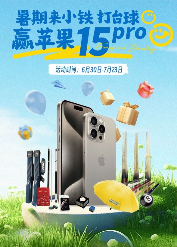 小铁自助台球暑期活动以“暑期去哪里玩?来小铁,打台球,有趣又好玩”为主题,自6月30日启动,先后开展“台球有趣故事征集”“打台球,赢苹果15Pro”“看直播,抽苹果15Pro”活动,吸引了“线上+线下”全渠道、多平台用户的广泛参与。