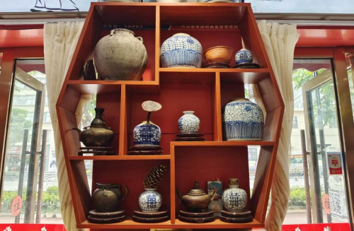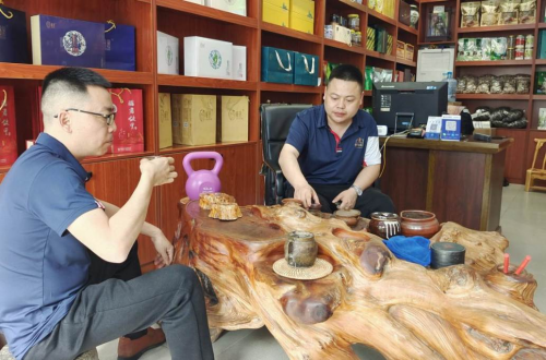 为了增加小店的文化氛围,店主专门设置了一个古玩架,摆放些奇石、瓷器和崖柏之类,店堂中间摆放了一尊根雕茶台,十分醒目,四周一些花草绿植,更是增添几分生机与活力。更为难得的是,这些奇石异草、茶具根雕,并非只是聋子的耳朵——摆设,而是店主屈万军发自内心的喜好。多年来,他从卖茶到品茶,从看花到养花,从喜欢到收藏,培养了不少闲情雅致。在朋友们眼中,他俨然是个“文化人”“自在人”。平日里,大家都喜欢到店里坐一坐、聊一聊,“借酒会故友,烹茶待新客”也是常有的事儿。