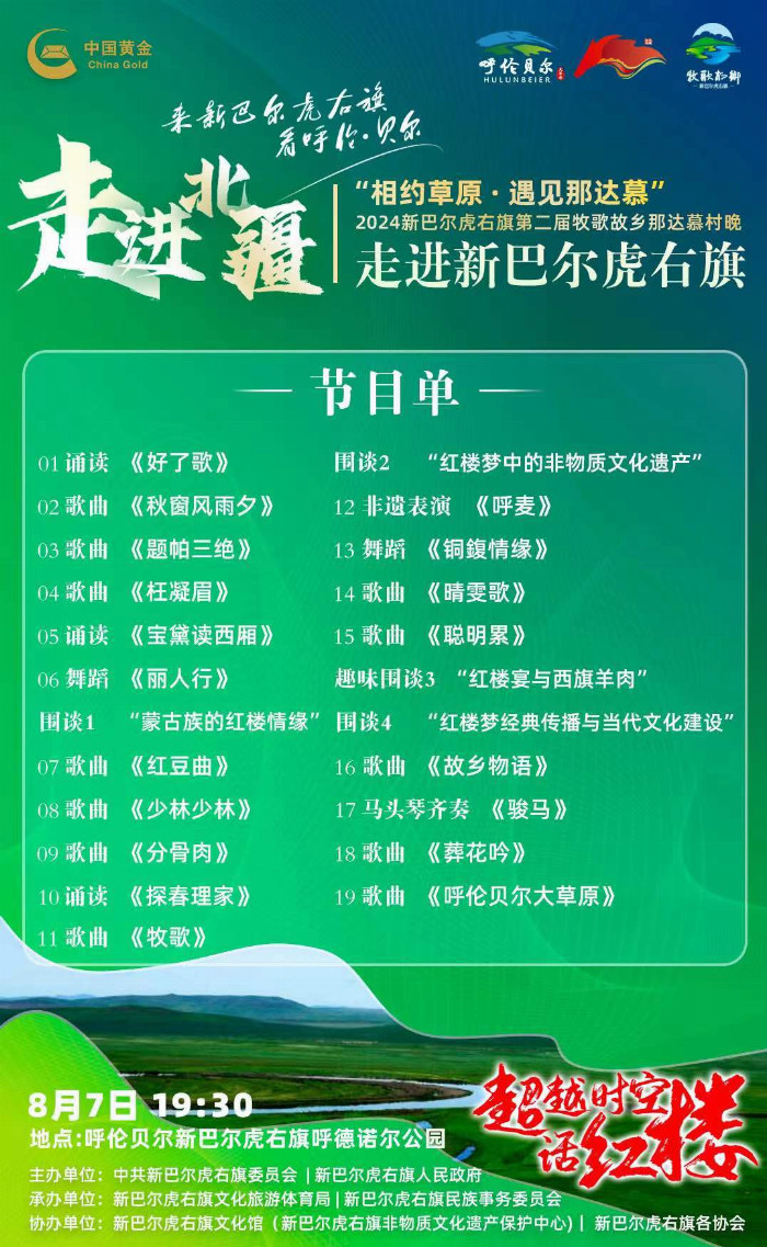北疆的壮美与红楼梦的细腻在这里交织,不仅是一次文化的盛会,更是一次心灵的洗礼。走进新巴尔虎右旗,感受牧歌故乡那达慕村晚的热烈氛围,让我们一同期待这场跨时代的文化对话,见证经典与边疆的完美融合。我们期待着每位参与者都能带走对北疆与红楼梦的深刻感悟,让这份独特的文化记忆在心中生根发芽,成为连接过去与未来、汉族与蒙古族、经典与创新的桥梁。