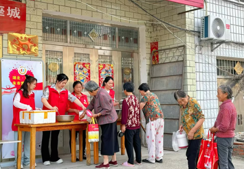 “阿姨,这边是甜绿豆汤,那边是不含糖的绿豆汤,您看需要哪种?我给您盛到保温桶里。”在小河镇朱市街道的爱心粥铺里,“心手襄依”志愿服务队志愿者们正忙碌着为独居老人们准备免费的绿豆汤。为了照顾到糖尿病老人的特殊需求,他们还特意准备了不含糖分的绿豆汤。发放过程中,志愿者们为老人们盛汤的同时,还耐心询问他们的身体状况和生活需求,他们的笑容和细心让每一位老人都感受到了真心和温暖。对于部分行动不便的独居老人,志愿者们顶着烈日在社区工作人员带领下送汤上门。一碗碗绿豆汤,不仅驱散了夏日的炎热,更让老人们感受到了来自社会的关爱与关怀。