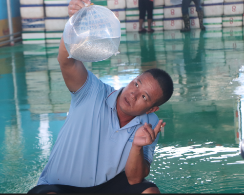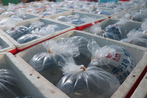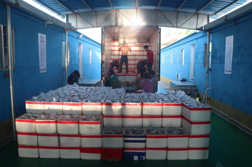 8月6日早上天还没亮,恒兴旗下的、位于湛江东海岛的国家863计划项目海水养殖种子工程南方基地“中兴1号”生态场早已繁忙的运作起来,前来拉苗的货车、面包车有序停放排队。苗场内工人们起苗、点苗、装苗、打包、运苗,养殖户在旁等待,看着工人打包,还时不时托起苗袋仔细观察苗的状态,等待着一袋袋“发财苗”打包好运回自己的塘头。