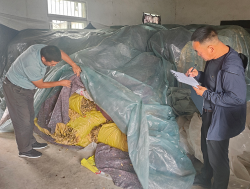 “近期温度持续达到37℃以上的高温,为防止烟堆烧堆,确保烟叶安全,必须要安排各服务部排查烟叶堆放场所的周边情况,并督促烟农采取揭膜、开门、开窗等措施降低烟堆温度,排除多余湿气。”黄渡烟站业务办主任田金云仔细分析着原烟保管专项追踪的必要性,在他的牵头下成立专项追踪组,对辖区烟农原烟保管开展全面检查。