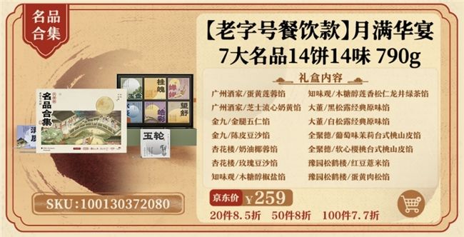 俗话说,十里不同风,百里不同俗。即使一块小小的月饼也有传统口味与创新口味,以及南北口味之争。京东推出的“月满华宴”老字号餐饮款月饼礼盒,包含了京式、广式、港式等众多流派的月饼口味,既保留了传统的经典风味,又增添了现代的创意元素,主打就是成熟的企业采购人不做选择题,全都要!