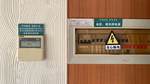 图为在办公场所粘贴绿色小提示 陈芯蕊/摄
