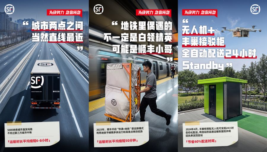 顺丰还在深圳、上海等多个城市实现了“ 快递+地铁”联运新模式,利用地铁平峰期间多余运力帮助快递运输,列车的高准点率有助于提升快件配送时效,运输时长平均可缩短50分钟。