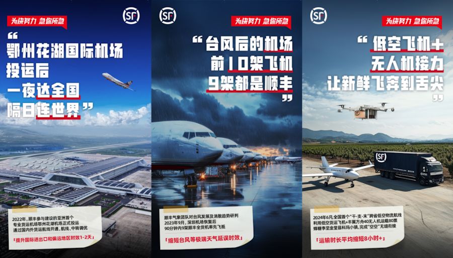 2022年,顺丰参与建设的亚洲首个专业货运机场鄂州花湖机场正式投运,截至2024年9月顺丰在鄂州花湖国际机场运营44条国内航线,13条国际航线,顺丰通过航线、中转调优,实现国际进出口和偏远地区时效提升1-2天,长距离运输甚至可以朝发夕至。
