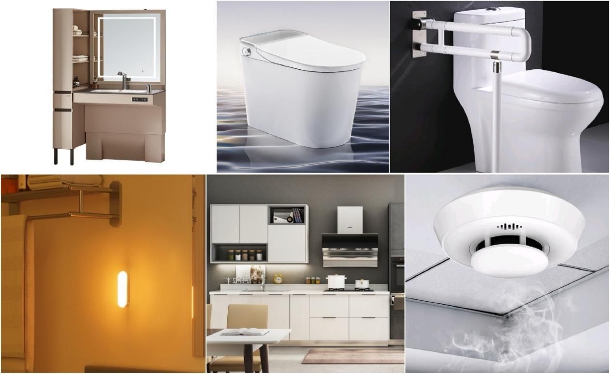 例如,拥有可升降设计的箭牌智能升降浴室柜,老人在梳洗时不必费劲弯腰;再安排上免触冲水的九牧智能马桶S780,以及表面夜光大颗粒凸起的莫顿U型上翻马桶扶手,有效减少老人如厕弯腰,并防止起坐发生侧翻;夜晚如厕时,感应亮起的公牛LED条形柔光小夜灯,让老人起夜不怕黑。在厨房区域,为他们换新志邦整体橱柜定制套装,合理布局洗切炒烹饪黄金动线,省去弯腰抬脚的次数;搭配海康威视烟雾报警器NP-FY300,通过高分贝报警、手机提示两大方式提醒厨房烟雾异常情况,为老人烹饪保驾护航。