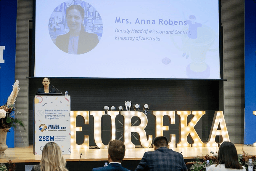 此外,澳大利亚驻克罗地亚大使馆副馆长安娜·罗本斯女士也发表了热情洋溢的开幕演讲,特别强调澳大利亚在科技创新领域的领先地位,并指出优瑞卡国际创新创业大赛(Eureka IIEC)这样的跨国交流平台对各国的技术合作和资源共享意义非凡。她表示希望在未来的国际科技生态中,能够进一步增强澳大利亚与克罗地亚以及其他国家之间的合作关系。