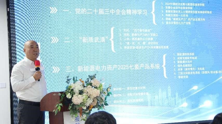 天津OTC副总经理何亮、武清开发区党委副书记赵品江、武清区工商联三级调研员安有霞相继登台致辞。他们的讲话充满了对新能源产业未来发展的殷切期望。何亮副总经理从资本市场的角度,强调了金融支持对新能源企业发展的重要作用;赵品江副书记则深入剖析了开发区在推动新能源产业集聚和创新方面的独特优势;于永胜书记从工商联的视角,阐述了民营企业在绿色低碳转型中的关键角色。三位领导的一致强调了新能源产业在推动AG亚游平台官网绿色低碳转型中的核心地位,并对本次活动的成功举办表达了热烈祝贺。他们的讲话不仅为活动增添了深度和广度,也进一步坚定了与会者对新能源产业未来发展的信心与决心。