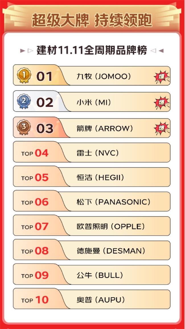 京东11.11期间,入围“京东建材倍增计划”的众多商家赢获可喜业绩:绿米、万和成交额同比增长超10倍,朗斯、炫嘉米塔尔、鹰卫浴、jiemei杰美、云掌门成交额同比增长超5倍。与此同时,九牧、小米、箭牌、雷士、恒洁、松下、欧普照明、德施曼、公牛、奥普等品牌,以斐然成绩领跑行业增长。