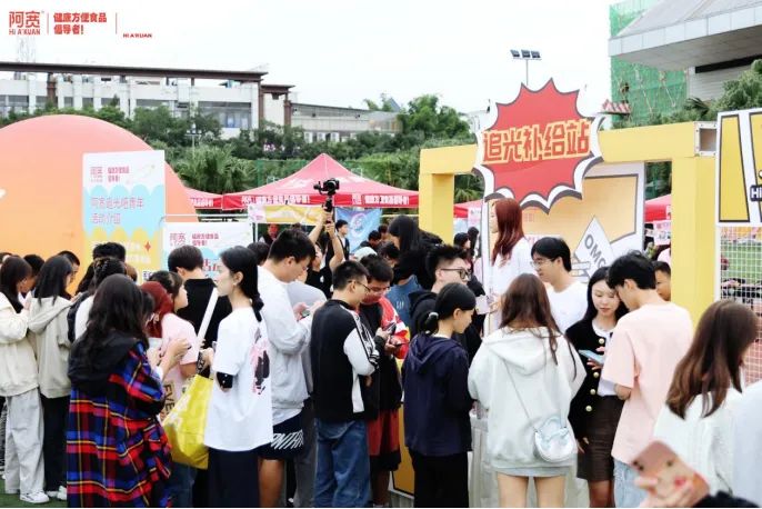 去年下半年,阿宽食品通过深入了解年轻人的生活方式和兴趣爱好,确定了以“追光吧青年”为主题的营销策略,在四川传媒学院、四川影视学院、成都锦城学院等高校举办了多场校园营销活动,拉近了品牌与年轻消费者之间的距离,打造了从线上到线下的品牌年轻化营销。