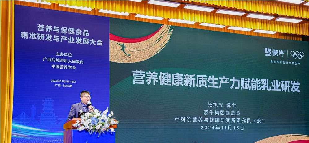 11月15日-17日,由广西防城港市政府与中国营养学会联合主办、蒙牛集团等单位承办的“营养与保健食品精准研发与产业发展大会”在广西防城港举行。本次大会汇聚了来自中国科协、国家卫健委、国内外知名院士、专家学者,共同探讨营养与保健食品、精准营养及基础营养等领域的最新科研成果与行业趋势,旨在以新质生产力为核心,推动营养健康产业实现高质量发展。蒙牛集团深度参与,全面分享蒙牛研发创新的最新成果,充分展现蒙牛在营养健康领域的深厚底蕴和前瞻视野。