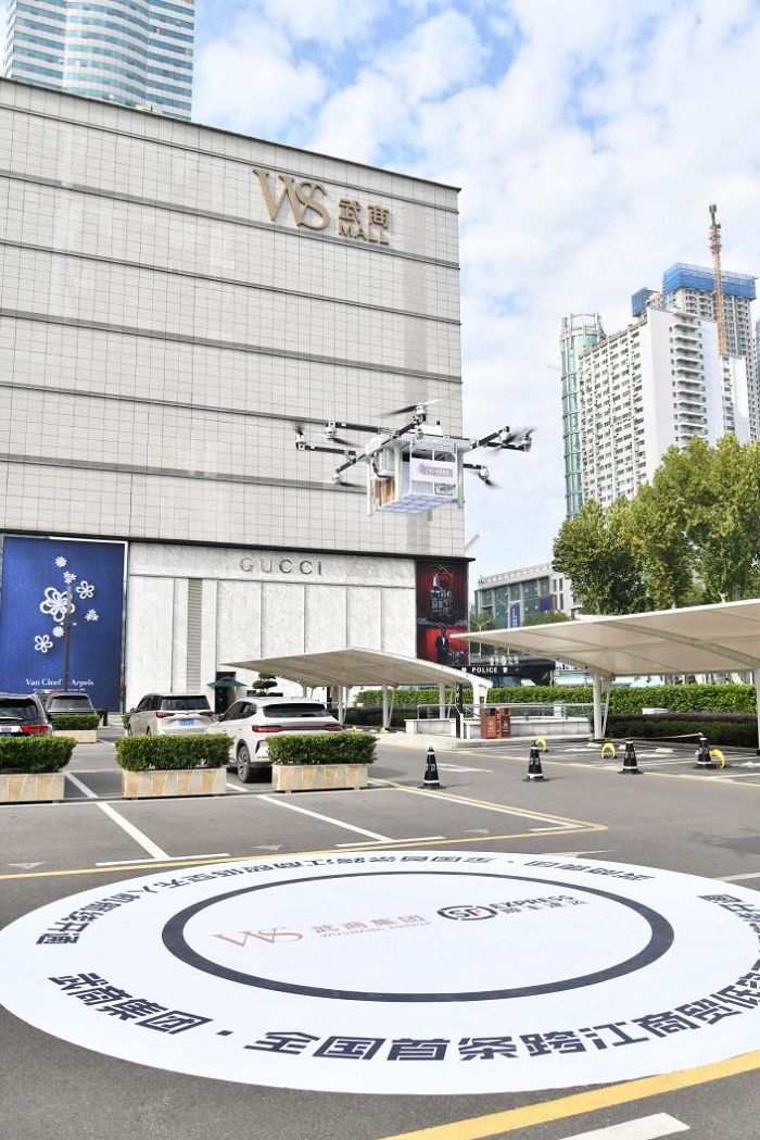 此次低空飞行首期航线已正式获批,从武商MALL至武商梦时代,主要应用于武商内部文件物品的往来,商家之间的货物即时调拨。