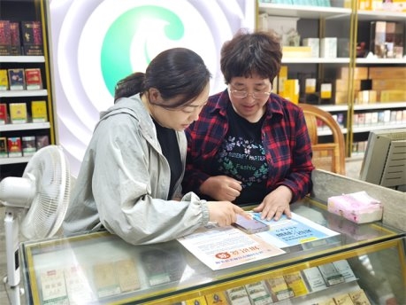 图为客户经理向零售户普法